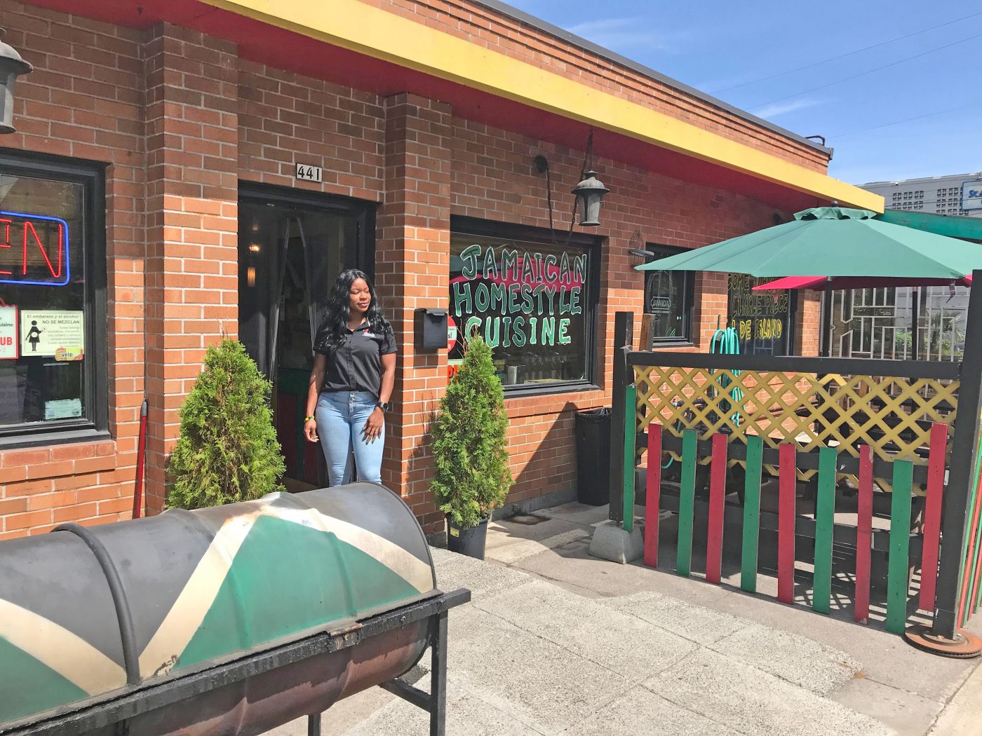 In this photo, Keacean Phillips, owner of Jamaican Homestyle Cuisine, poses outside of her restaurant located on North Killingsworth St. in Portland, Ore. (Photo by R. Dallon Adams)