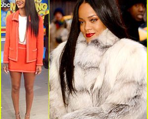 [Just Jared] Rihanna bundles up in a huge fur winter coat as she arrives for her interview at the Good Morning America studios on Wednesday (January 29) in New...